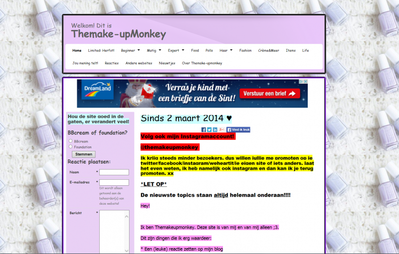 Deze unieke site en blog gaat over make-up en een beetje fashion, muziek, en nog veel veel meer. De blogster geeft er tips en diy's voor beauty.