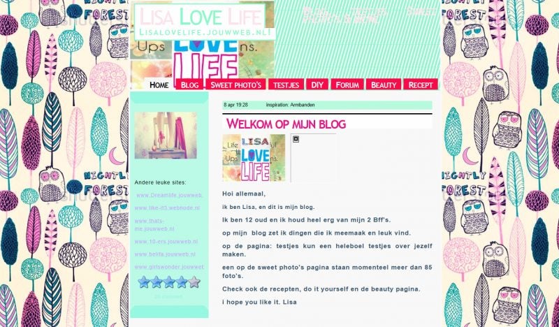 Deze website is de site van m'n BFF JN. In totaal heeft ze 4 site's, maar deze en deco by tf vind ik de leukste. Het gaat over coole onderwerpen over mode en beauty. Ze organiseert ook supertoffe wedstrijden zoals LINKer.